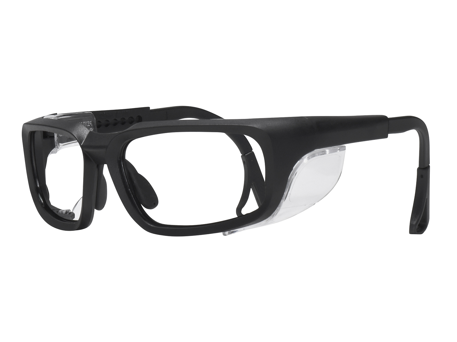 The PENTAX ZT100 is a non-conductive, wrap around style prescription safety glasses frame with adjustable length temples to improve fitting. The clear, polycarbonate side shields are permanently attached. The latex free, rubber nose pads and temples help the frame sit securely throughout the day. Meets ANSI Z87.1 standards for high mass & high velocity impact resistance. Frame case or pouch included with Rx orders.
